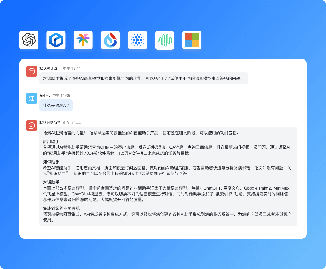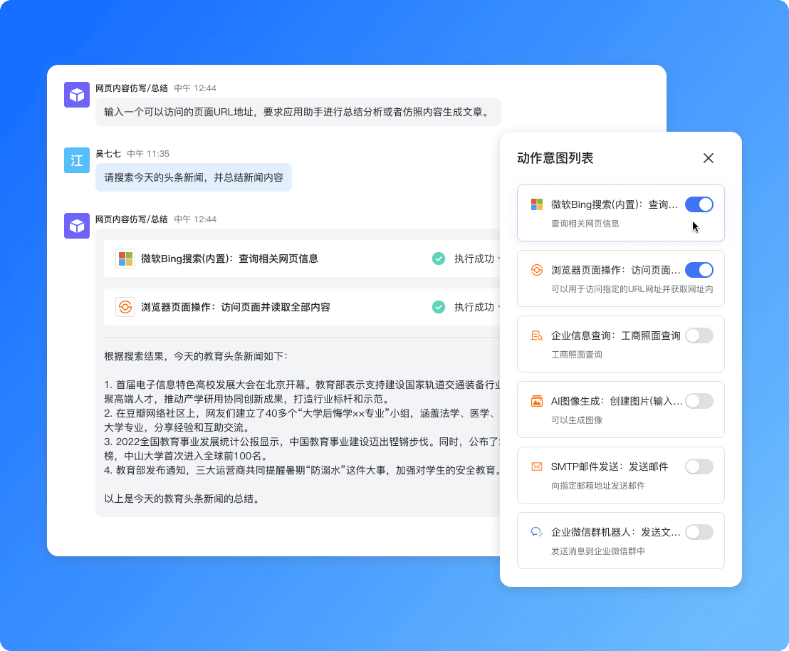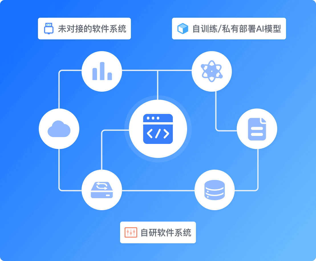 通过开发平台对接您自有的软件系统与语言模型,满足企业内部与外部个性化需求。
