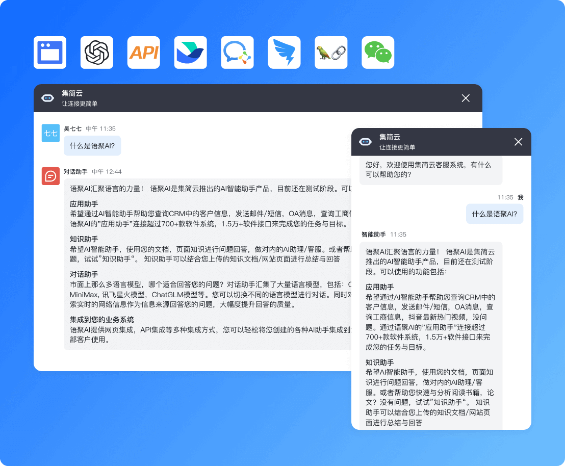 轻松将灵犀API的能力嵌入到您的网站页面,或者办公系统中,为企业内部或者外部成员提供自定义的AI助手服务.